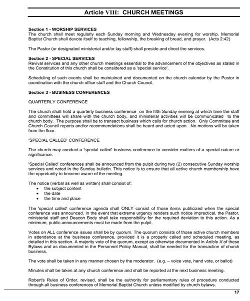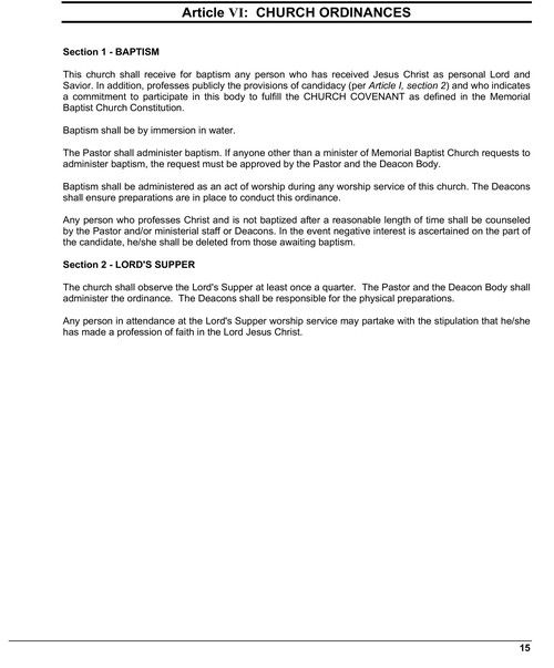 To download a copy of Memorial Baptist Church Constitution and Bylaws